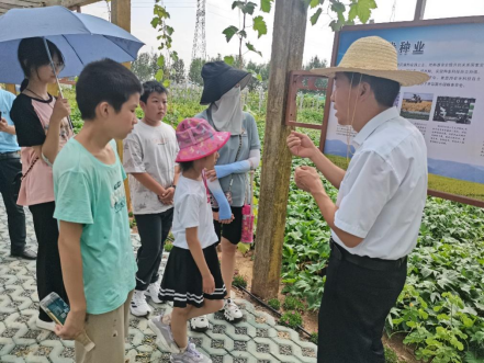 在“耕读文化园”,郭传鑫书记从上古农业、原始农业、商周农业、旱地农业、水田农业、近代农业和现在农业等七个方面为前来参加活动的学生及家长详细讲解了中国农耕文明发展历程;并在“神农百草认知区”耐心细致为学生讲解了我国北方常见的粮食作物、经济作物和瓜果蔬菜的起源驯化、主要性状特点、生长习性及其在维护国家粮食安全中的重要作用。
