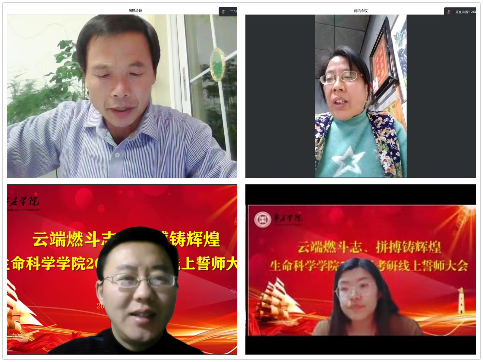 家长代表张旭老师,郭红霞女士分别发表了殷切期望和温暖祝福。李媛媛、丁诚实两位老师代表学院全体老师鼓励考研学子要以自信、踏实、阳光的心态,全身心地投入到考试中,用优异的成绩实现理想。