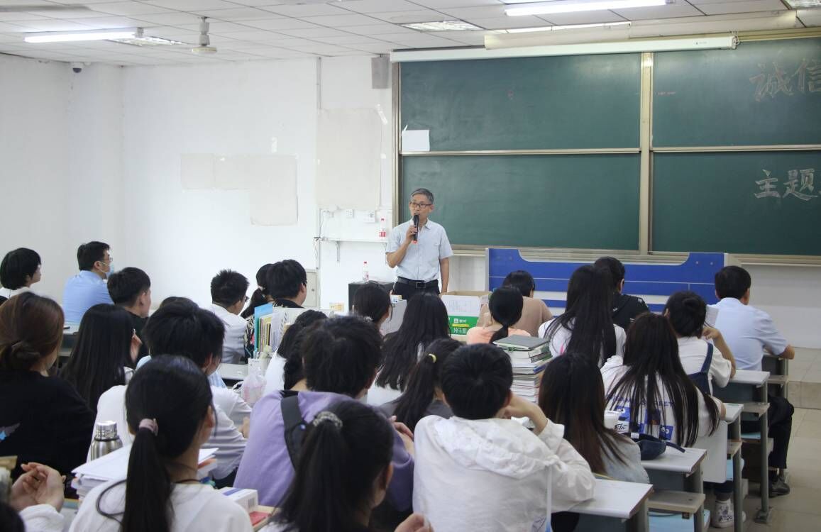 会上,党总支书记郭传鑫对同学们本学期的学习做出总结,并着重强调诚信考试、诚信做人的观念。“车无而辕而不行,人无信则不立。”大学生的诚信意识、诚信品质、诚信行为,关系到良好的社会风尚培育。要求全体同学要提高认识、规范言行,以诚信为本、以学识为基,认真复习,充分发挥,争取在考试中取得良好成绩。