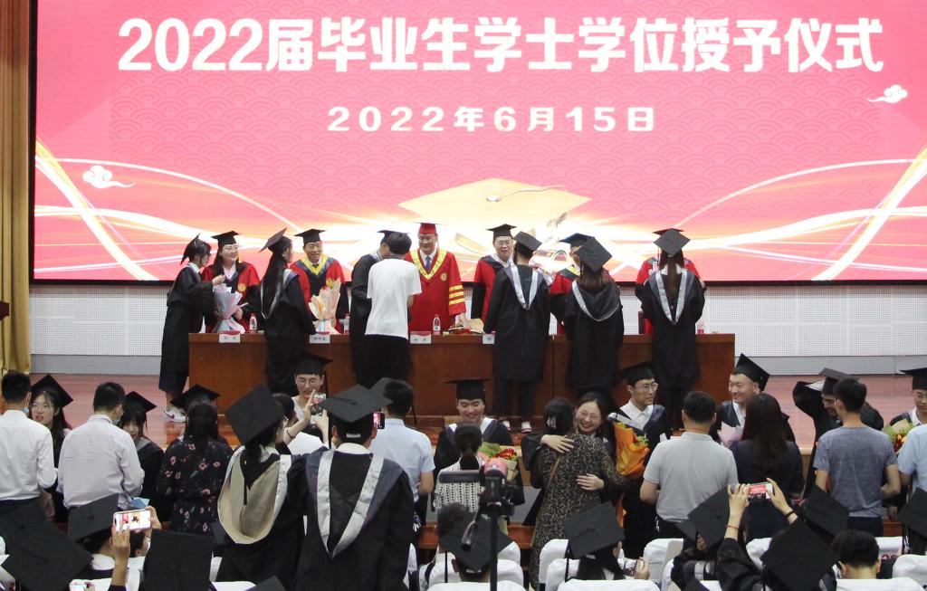 仪式上,获得学士学位的同学们依次上台,校党委委员、统战部部长林勇同志为他们拨穗正冠,并颁发学士学位证书和一束向日葵花,表达了对每一位学生的衷心祝贺,期盼学生在挥手告别学校后,成为一位有理想、有道德、有文化、有纪律的“四有青年”,并祝愿每位同学如盛开的向阳花,此去一生向阳,前程锦绣!