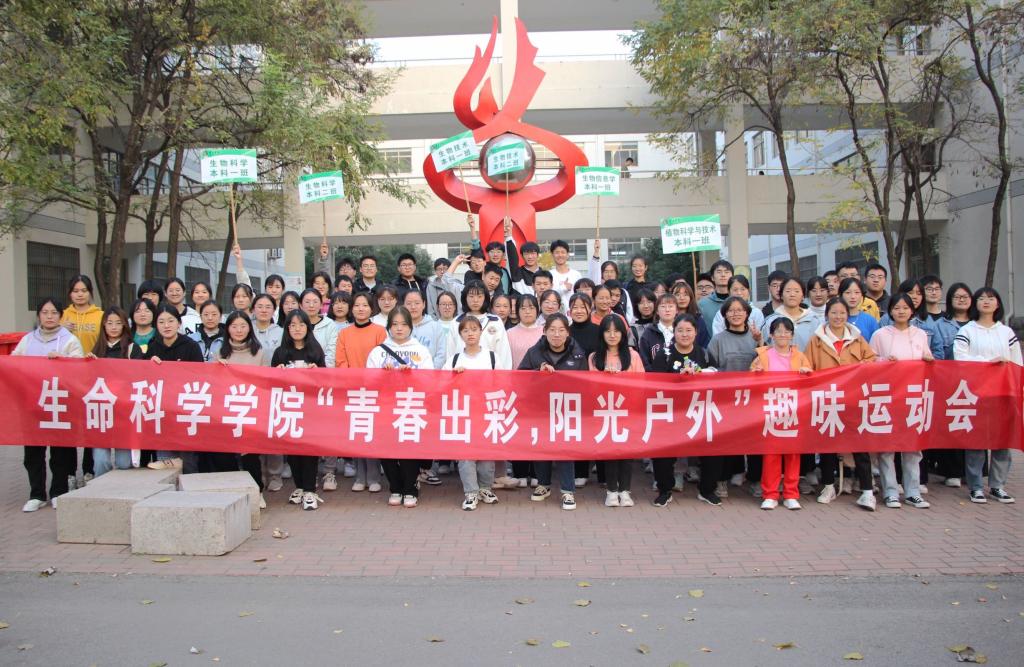 为进一步落实中共中央办公厅国务院办公厅《关于全面加强和改进新时代学校体育工作的意见》和学校“六个一”工作要求,强化班级建设,丰富校园生活,锻炼健康身心,11月3日下午,生命科学学院在综合楼前举行“青春出彩、阳光户外” 趣味运动会。副书记韩笑、2021级辅导员、班主任及2021级全体同学参加活动。