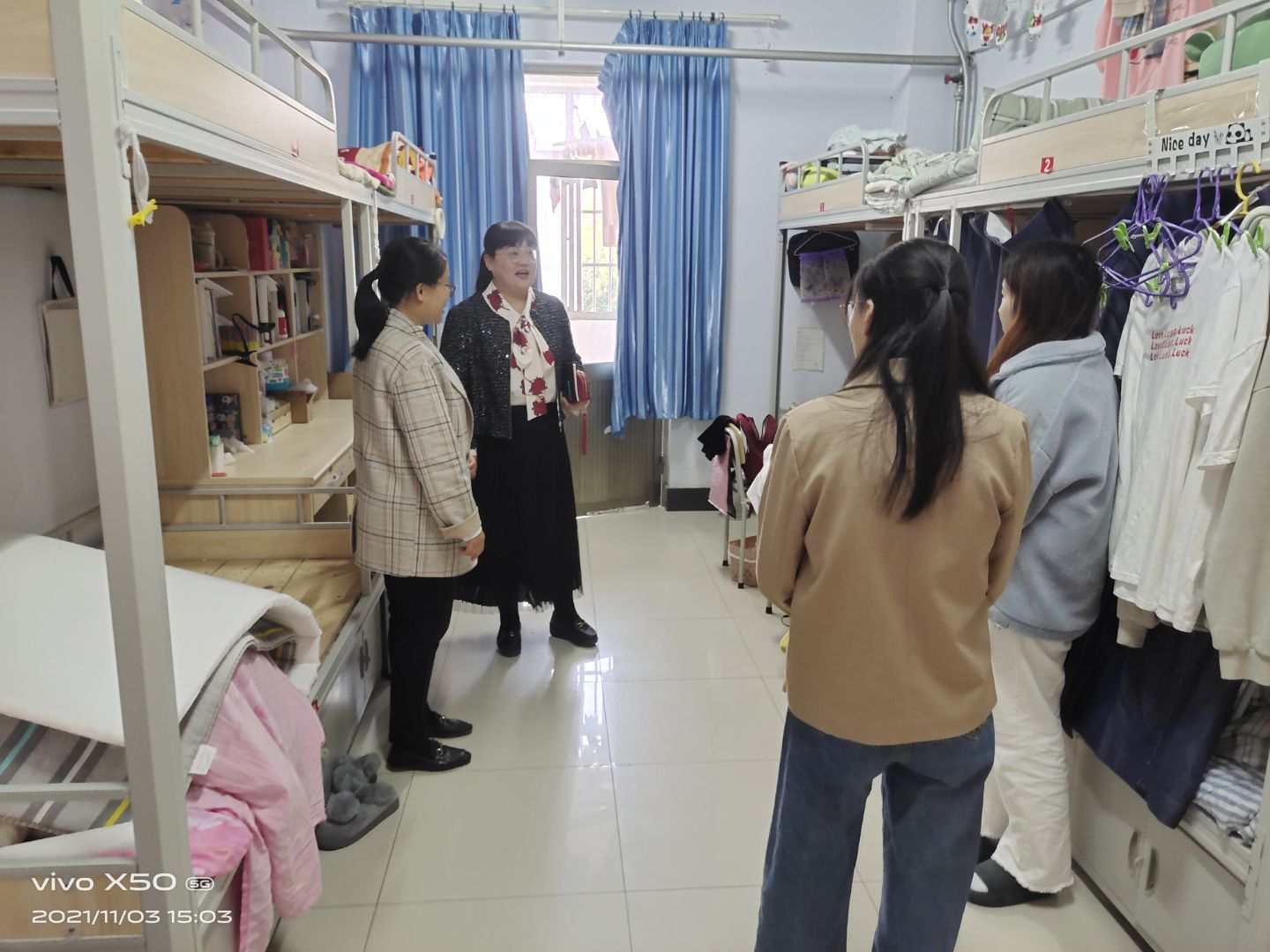为进一步加强学生宿舍安全管理,确保人身、财产安全,11月3日下午,副书记韩笑、副处级组织员陈原国带领全体辅导员、班主任们深入学生宿舍,进行宿舍安全卫生检查。