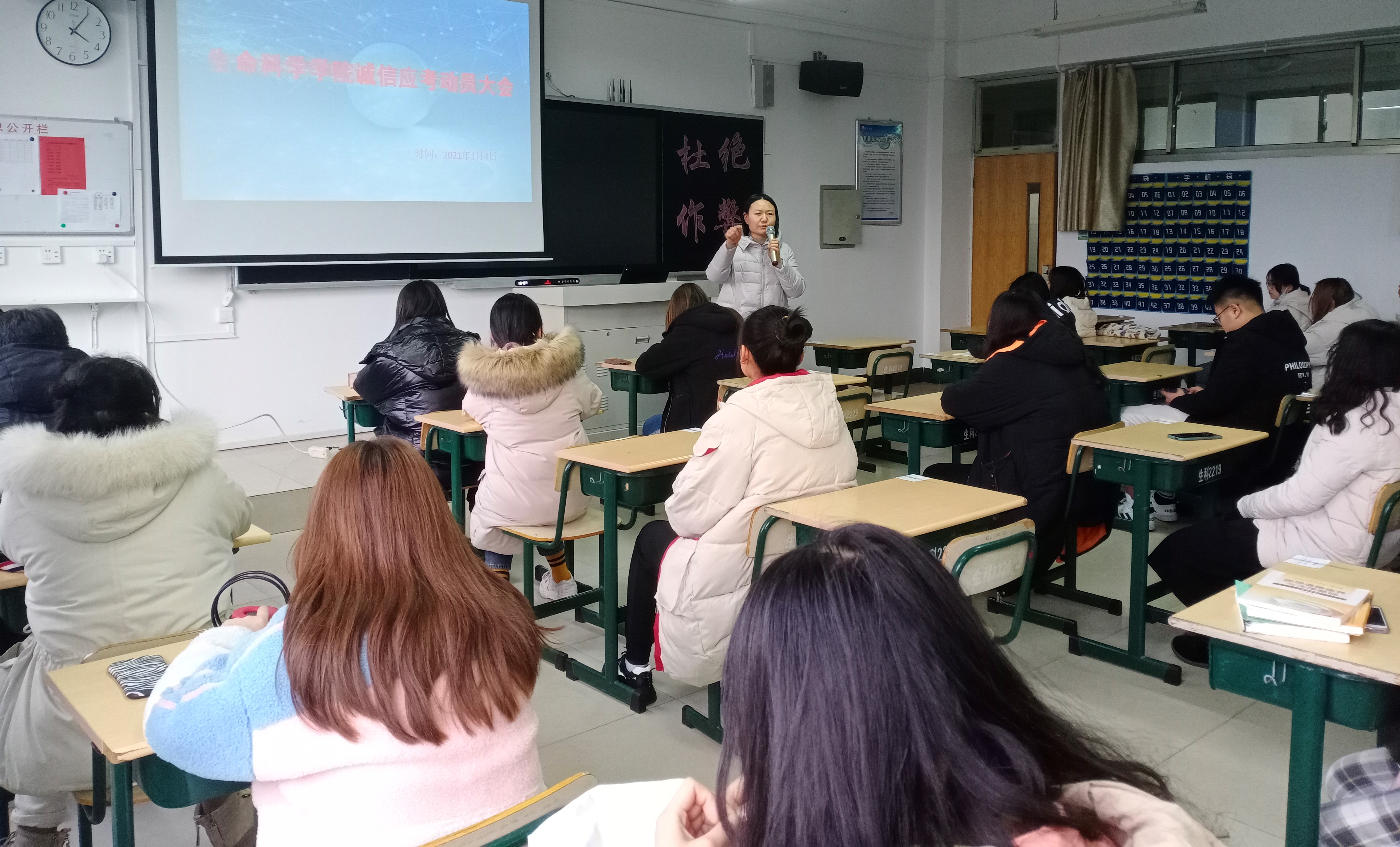 树道德之新风,立诚信之根基。1月4日,生命科学学院在理工楼2218和2219教室开展诚信应考主题教育活动。本次会议由生命科学学院党总支副书记韩笑、辅导员陈丽主讲,团总支书记王正荣主持,生命科学学院20级全体学生参加会议。