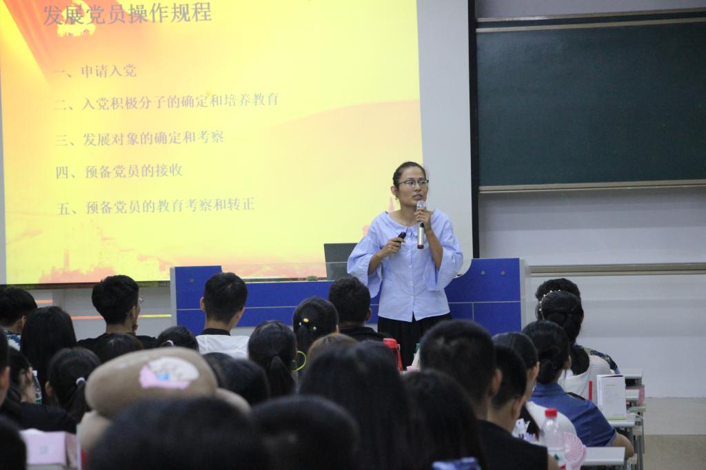 为了加深新生对党的了解,让新生熟悉入党的基本流程,生命科学学院于9月16日晚7点30分在理工楼2205召开了新生入学教育之入党启蒙会议,我院党总支组织员曹海青老师负责主讲,2019级全体新生参加了本次会议。