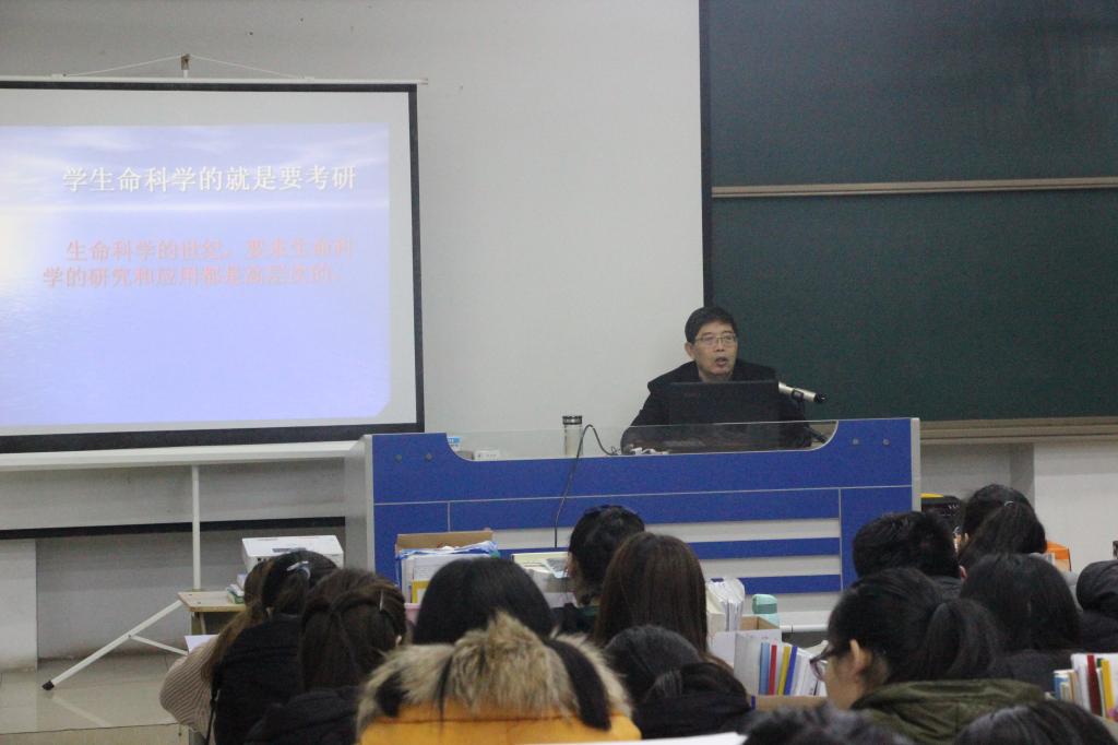 12月19日下午,生命科学学院院长王洪凯在理工楼2205教室为2016级全体学生做了专业发展规划报告会。