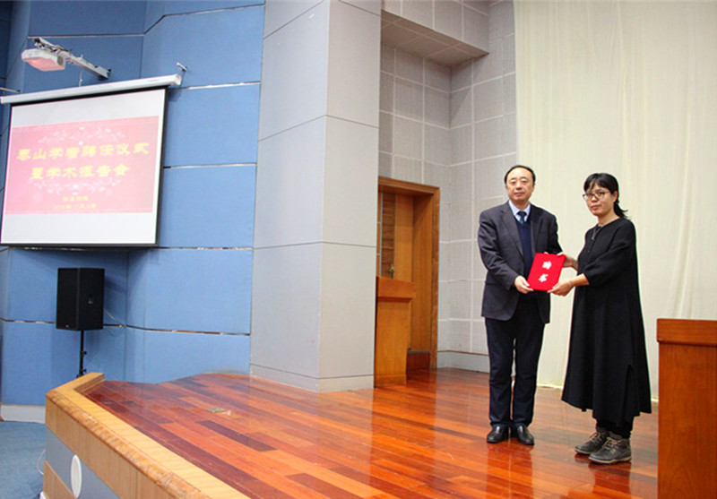 聘任仪式由生命科学学院院长王洪凯主持。他介绍了孙秀莲教授的情况,概述了特聘教授的作用。校长曹胜强为孙秀莲教授颁发聘书,并对孙秀莲教授成为我校特聘教授表示热烈欢迎。