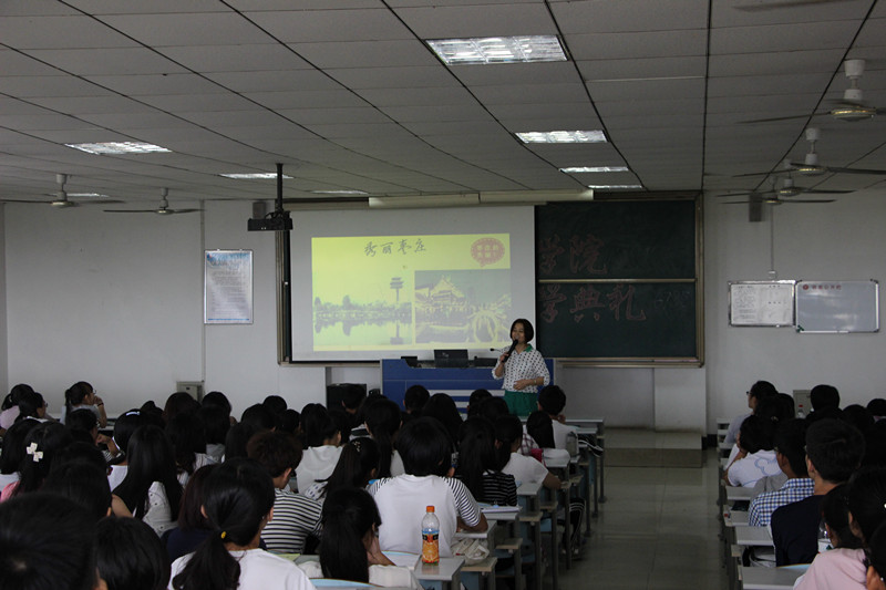 典礼结束后,戴恩冰书记作了题为“认识枣庄,了解枣院,融入生科院”的入学教育。报告分为三部分:一、认识枣庄。介绍枣庄的地理位置、特色文化、风土人情、地方习俗、风景名胜等,使新同学们对“江北水乡·运河古城”、素有“鲁南明珠”之称的枣庄有了比较细致的认识。二、了解枣院。讲解了学校的发展历程、校风校训、教育方针、教学理念、应用型人才培养模式。三、融入生科院。向同学们详细介绍了生命科学学院的师资力量、生科精神、管理制度、专业设置、专业培养目标、就业情况、升学情况等。最后,戴书记要求全体新生要有爱国之情、强国之志,坚定弘扬爱国主义精神,切实践行社会主义核心价值观,将实现中华民族伟大复兴的“中国梦”作为自己的弘大志向。要秉承枣院校风、校训,传承生科精神,“不忘初心,做最好的自己”。要加强自我管理能力,努力促进优秀学习习惯的养成。