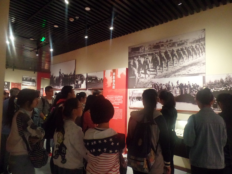 在台儿庄大战纪念馆,同学们认真倾听讲解人员的讲解,瞻仰历史文物,阅读文字简介,观看影响资料。通过现场教学,全体积极分子详实地了解了台儿庄大战的情况,聆听了革命先烈为了中华民族的解放和自由,甘愿抛头颅、洒热血,不惜牺牲自己的宝贵生命与日寇浴血奋战的感人事迹。