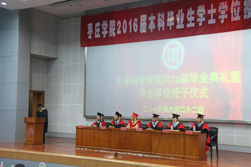毕业典礼在庄严的国歌声中拉开序幕。随后,生命科学学院副院长王红妹宣读了《关于授予生命科学学院2016届本科毕业生学士学位的决定》。
