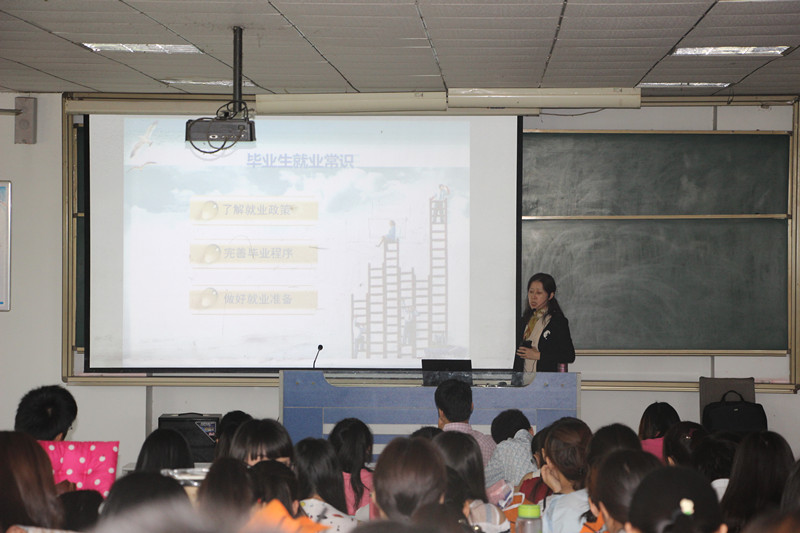 会上,顾静老师首先讲解了目前的就业政策,强调“政策就是信息,就是机会和出路”,告知毕业生了解就业政策的步骤与途径,即通过关注国家、省级相关的就业服务网以及各地市大学生就业办公室、服务中心和人才市场,逐级了解不同地区的就业政策。接着,顾老师着重讲解了毕业生就业流程及规范,从就业方案确认、毕业生实名登记、就业报到、二次派遣、调整改派、档案转递等几个方面作了详细的说明。最后,顾老师告诫全体毕业生要做好就业准备,树立正确的择业就业观。