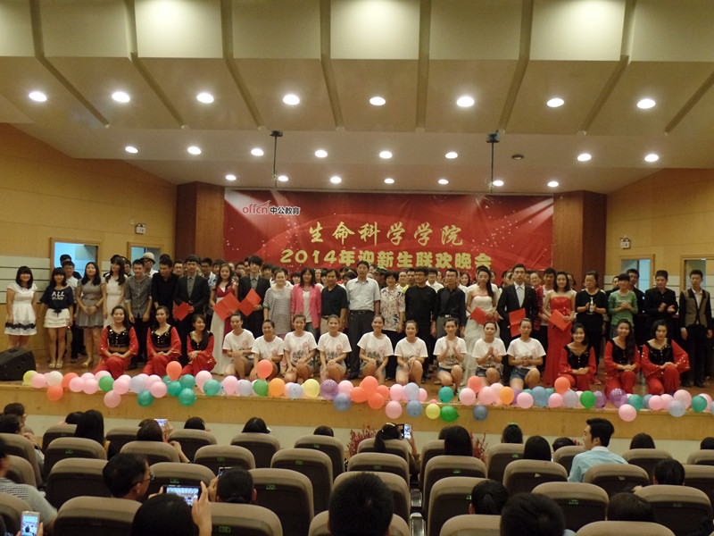 9月21日晚,生命科学学院2014年迎新晚会在学校音乐厅隆重举行,学院领导、辅导员以及2014级全体新生一同观看了演出。