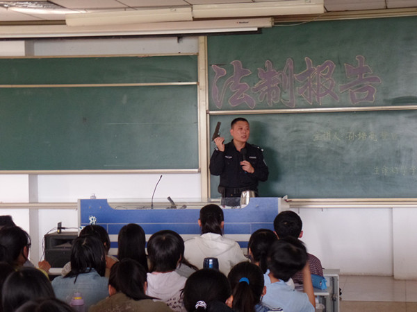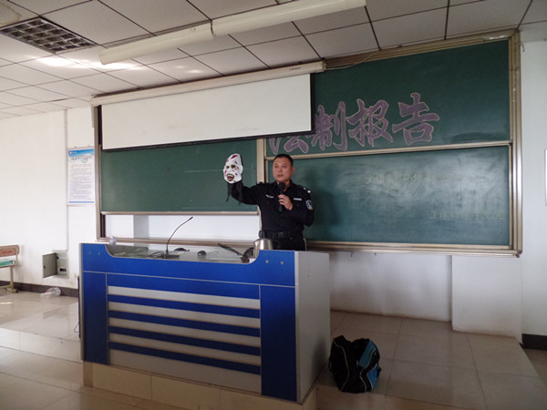 报告结合当前社会形势与社会治安问题,选取具有代表性的真实案例以案说法,配以案发现场视频、图片及对犯罪现场的模拟,以血的教训警示大家法制与安全的极端重要性。孙警官强调,面对矛盾,要冷静处理,不能冲动,要多为他人考虑,退一步海阔天空,避免激化矛盾;大学生尤其是女大学生外出时要结伴而行,提高警惕,加强防范意识,不要坐黑车或独自乘车,不走偏僻小路。孙警官最后殷切告诫广大同学,学生个人的安全是全家人最大的幸福,要时刻牢记遵纪守法,珍爱生命,重视安全。