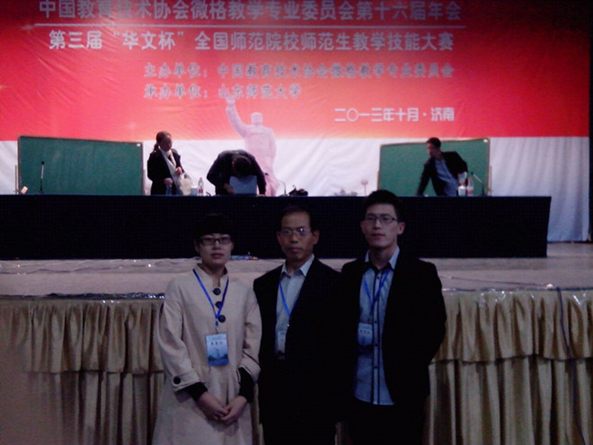 10月19日、20日,由中国教育技术协会微格教学专业委员会主办的第三届“华文杯”全国师范院校师范生教学技能大赛在山东师范大学举行。来自全国60多所学校的170多名师范生进行了生命科学授课比赛,比赛共分为教学设计片段(文稿)、“说”教学设计思路、模拟授课、现场答辩四个环节进行。比赛过程中,来自我校生命科学学院2010级生物科学专业的李怡婷、贾涛同学展现了良好的精神风貌和扎实的教学实践技能,得到专家评委的一致好评。最终,经过激烈角逐,李怡婷获得大赛一等奖,贾涛荣获大赛二等奖。