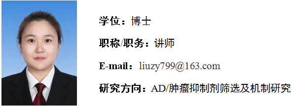 刘孜育,女,中共党员,2022年3月毕业于日本东京医科齿科大学/理化学研究所(RIKEN)生命理工医疗科学专业,获理学博士学位。2024年8月进入枣庄学院生命科学学院工作。主要从事阿尔茨海默症和肿瘤抑制剂筛选及其相关机制研究。近年来以第一作者及共同作者身份在《Journal of Biological Chemistry》、《Oncology Research》、《Frontiers in Aging Neuroscience》等学术期刊发表论文。