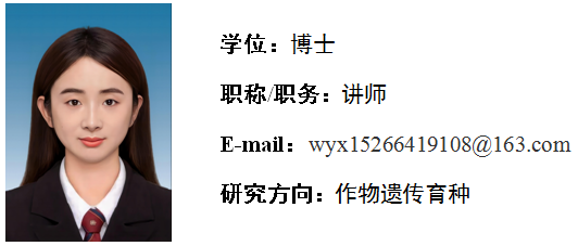 王语新,女,中共党员,2024年6月毕业于中国农业大学作物遗传育种专业,获农学博士学位。2024年8月进入枣庄学院生命科学学院工作。主要从事作物遗传育种的相关研究。近年来在《Journal of Integrative Agriculture》、《The Plant Journal》、《New Phytologist》、《Plant Science》等学术期刊上发表论文多篇。