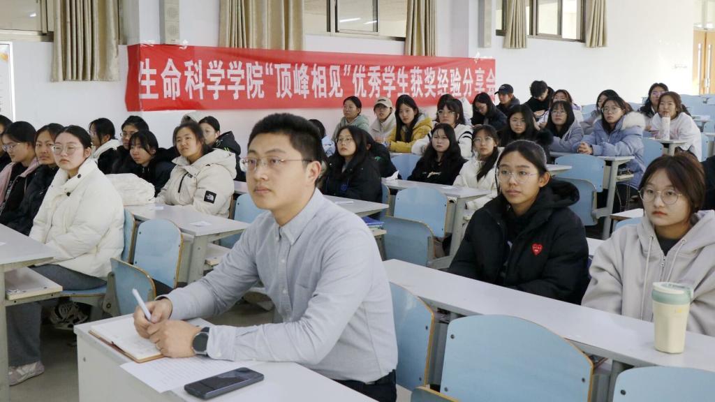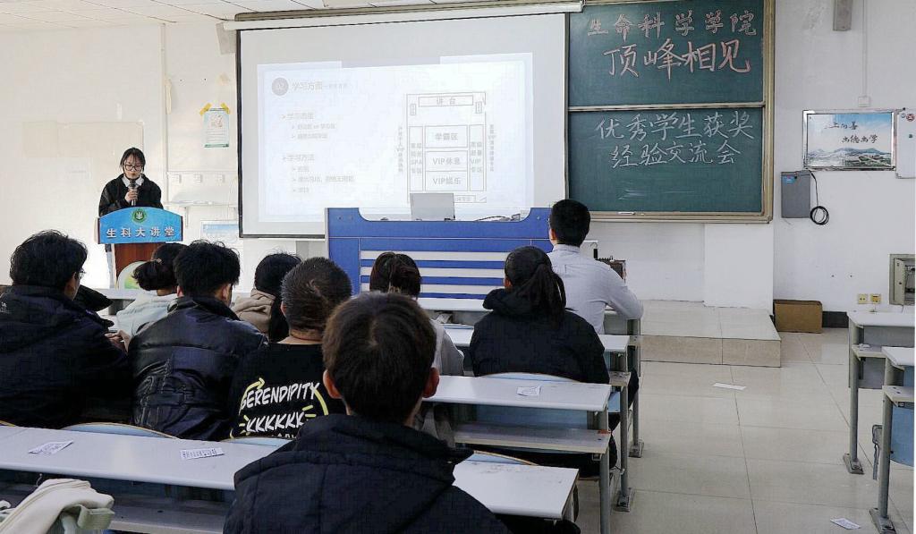 为进一步加强学风建设,以榜样力量激励和引导广大同学见贤思齐,奋发向上,11月15日,生命科学学院在理工楼2205教室举办“顶峰相见”优秀学生获奖经验交流会,2023级全体学生参加了此次大会。