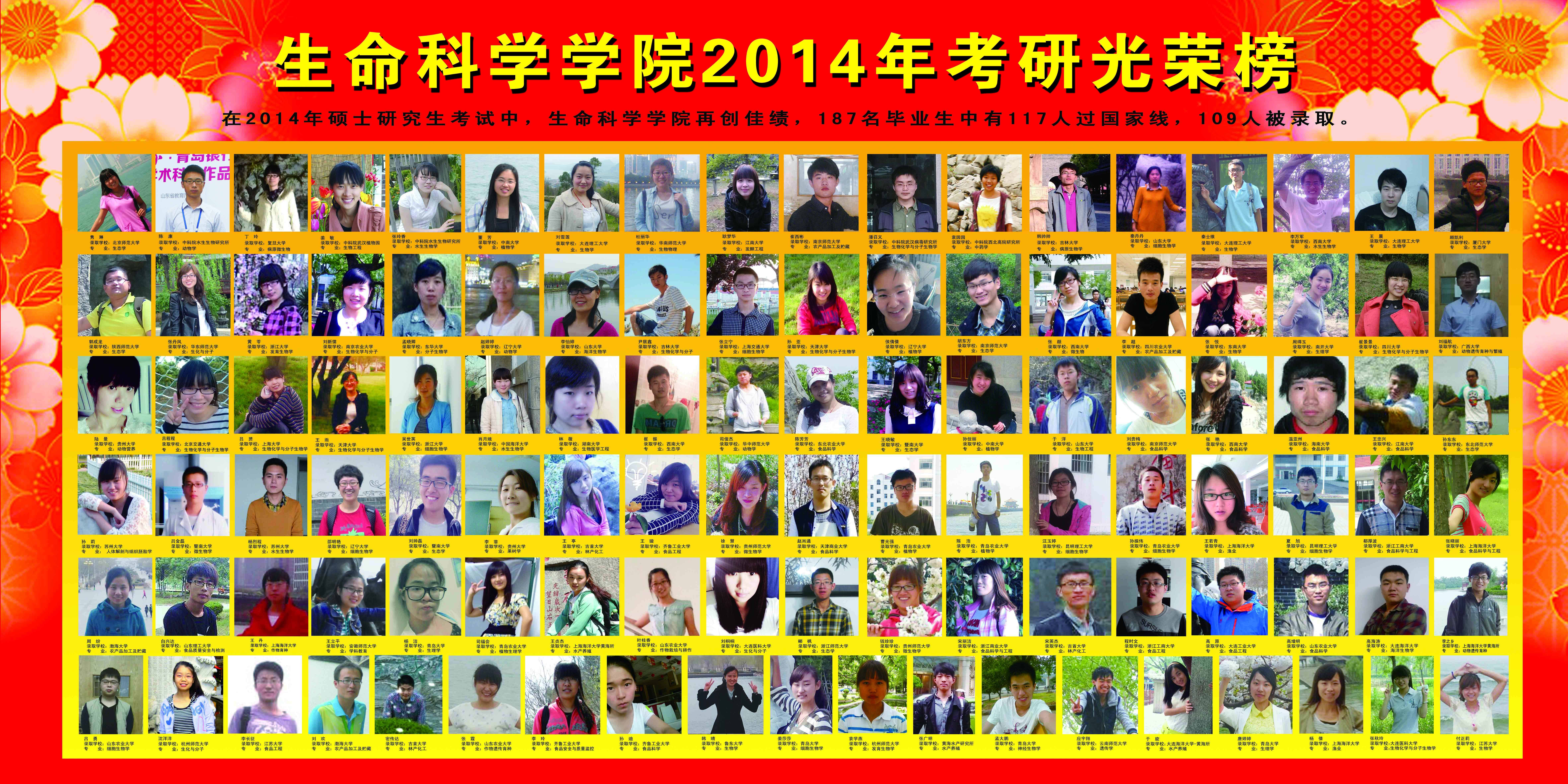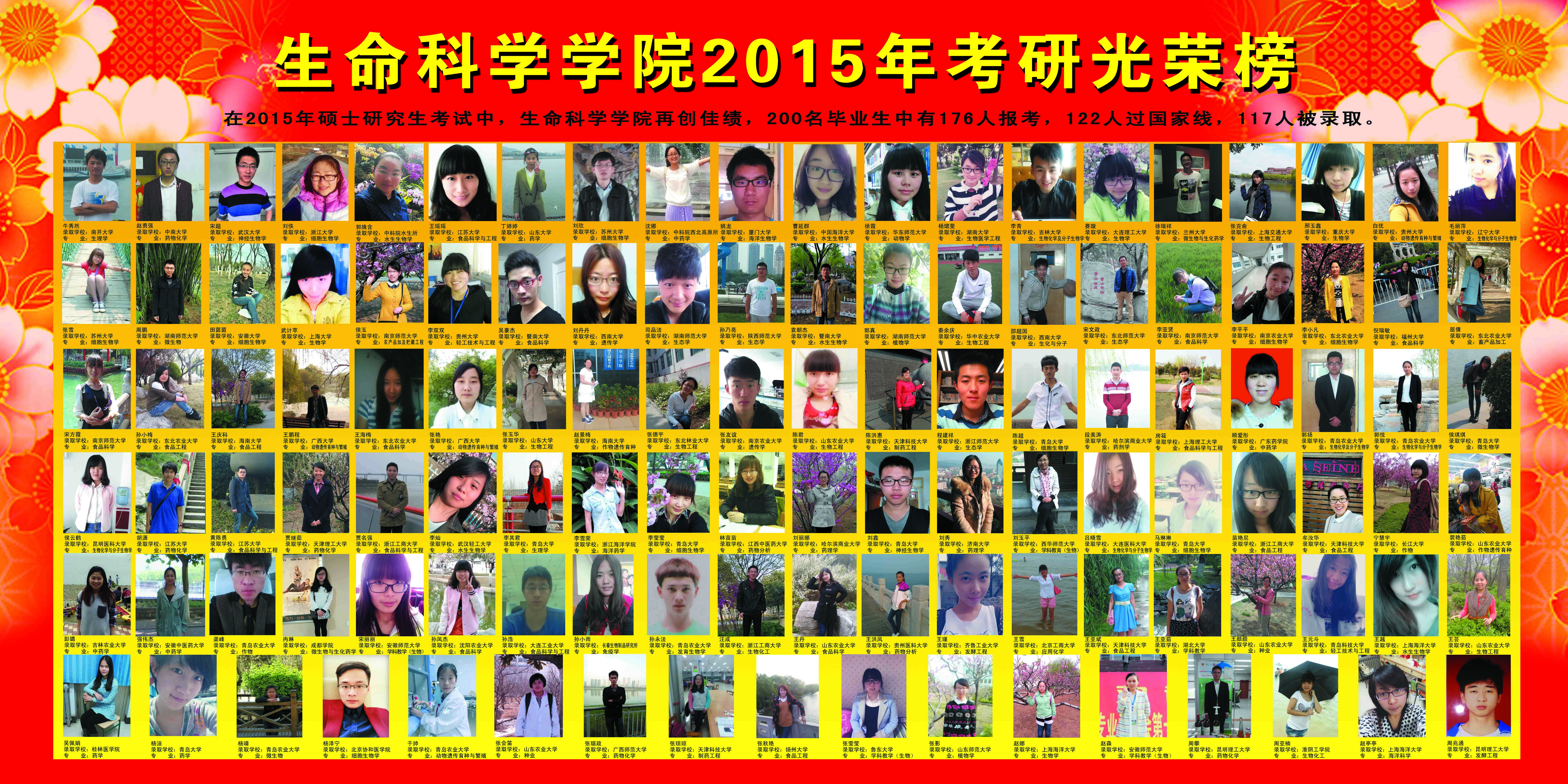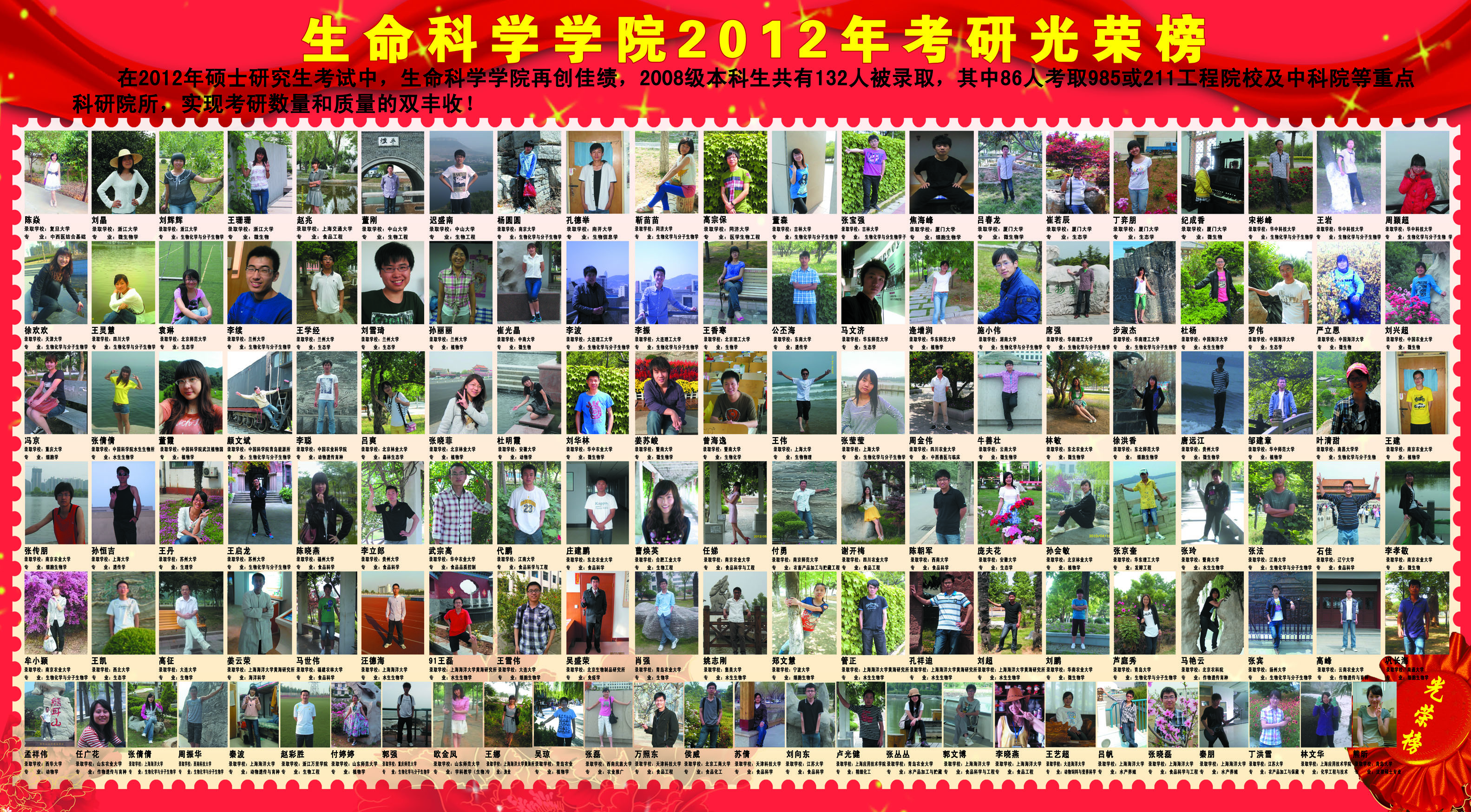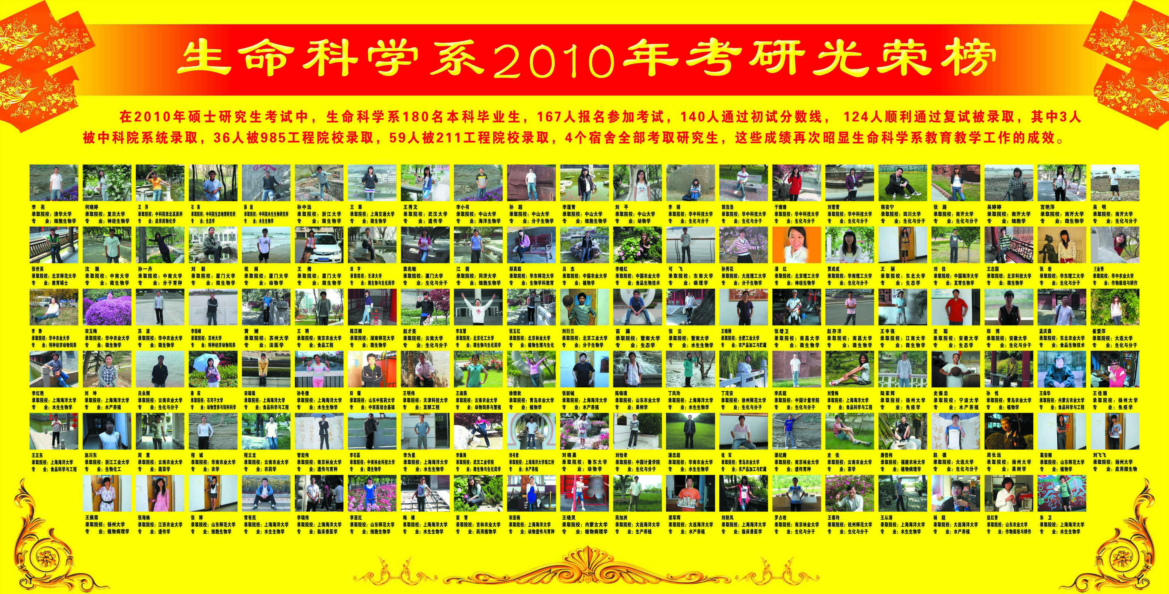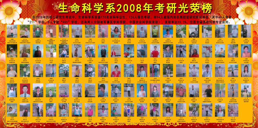 生命科学学院近18年(2008-2025)考研光荣榜(具体详见每年考研情况统计)