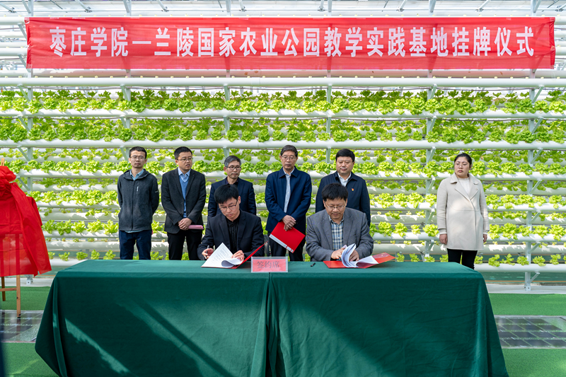 揭牌仪式上,王传喜代表兰陵国家农业公园致辞,对枣庄学院一行的到来表示欢迎,希望双方以此次签约揭牌为契机,加深校企合作,同时期待枣庄学院今后能够在新农人培训、公园设施栽培技术创新方面为兰陵国家农业公园提供大力帮助。兰陵国家农业公园作为全国最具影响力的蔬菜花卉集约化设施栽培园区,未来将成为枣庄学院大学生教学实践基地,可为枣庄学院高素质应用型农科人才培养提供现代化的实习实训平台。