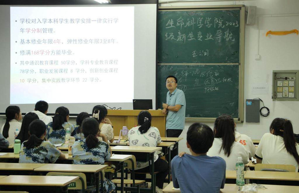 为更好的培养新生的专业认知水平与专业认同感,确定专业学习目标、做好人生规划,9月20日-22日晚,生命科学学院在理工楼分六场召开了2023级新生专业导航教育。
