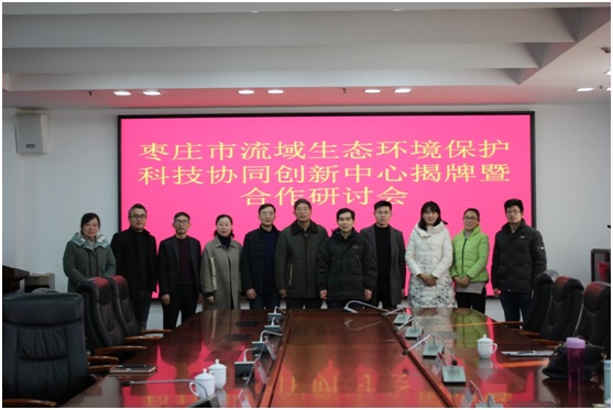 1月9日上午,“枣庄市流域生态环境保护科技协同创新中心”揭牌仪式暨合作研讨会在三楼会议室举行。生命科学学院王洪凯院长、王玉海教授,枣庄市水文局赵立冬副局长、韩梅科长,山东省枣庄生态环境监测中心徐海峰主任,山东中成环境技术服务有限公司刘道香、李海玲经理等领导出席会议。