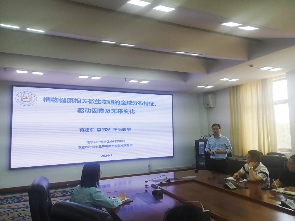 在接下来的报告中,蒋教授详细阐述了植物健康相关微生物组的全球分布特征、驱动因素以及未来变化趋势。他结合最新研究成果,为师生们揭示了植物病原真菌和植物有益细菌在全球范围内的分布规律,以及影响这些微生物组分布的关键因素。同时,他还对未来植物健康相关微生物组的变化趋势进行了展望,为解决全球粮食问题提供了新的思路和方法。
