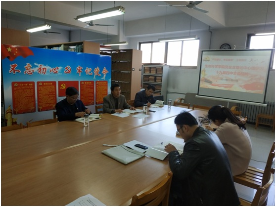 近日,生命科学学院召开党总支理论学习中心组会议,传达学习党的十九届四中全会精神,结合工作实际,研究贯彻落实意见。生命科学学院党总支书记郭传鑫主持会议并讲话,党总支理论学习中心组成员以及各支部书记出席会议。