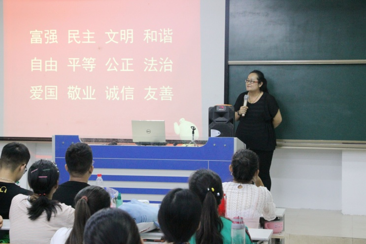 生命科学学院积极响应学校号召,开展19级新生入学教育活动。2019年9月10日晚7:30,在理工楼2205召开了社会主义核心价值观教育专题。本次会议由马晶老师主持,曹海青老师及2019级全体新生出席了本次会议。