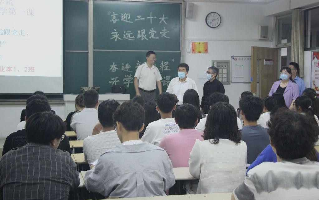 为帮助学生以更加饱满的精神状态迎接秋季学期开学,进一步做好学生思想政治教育和爱国主义教育,开展好疫情防控和生命安全教育,8月31日晚,生命科学学院各班级开展“喜迎二十大、永远跟党走、奋进新征程” 秋季开学第一课主题班会。学院党总支书记郭传鑫带领院党政班子走进学生教室看望返校学生,送去亲切问候。