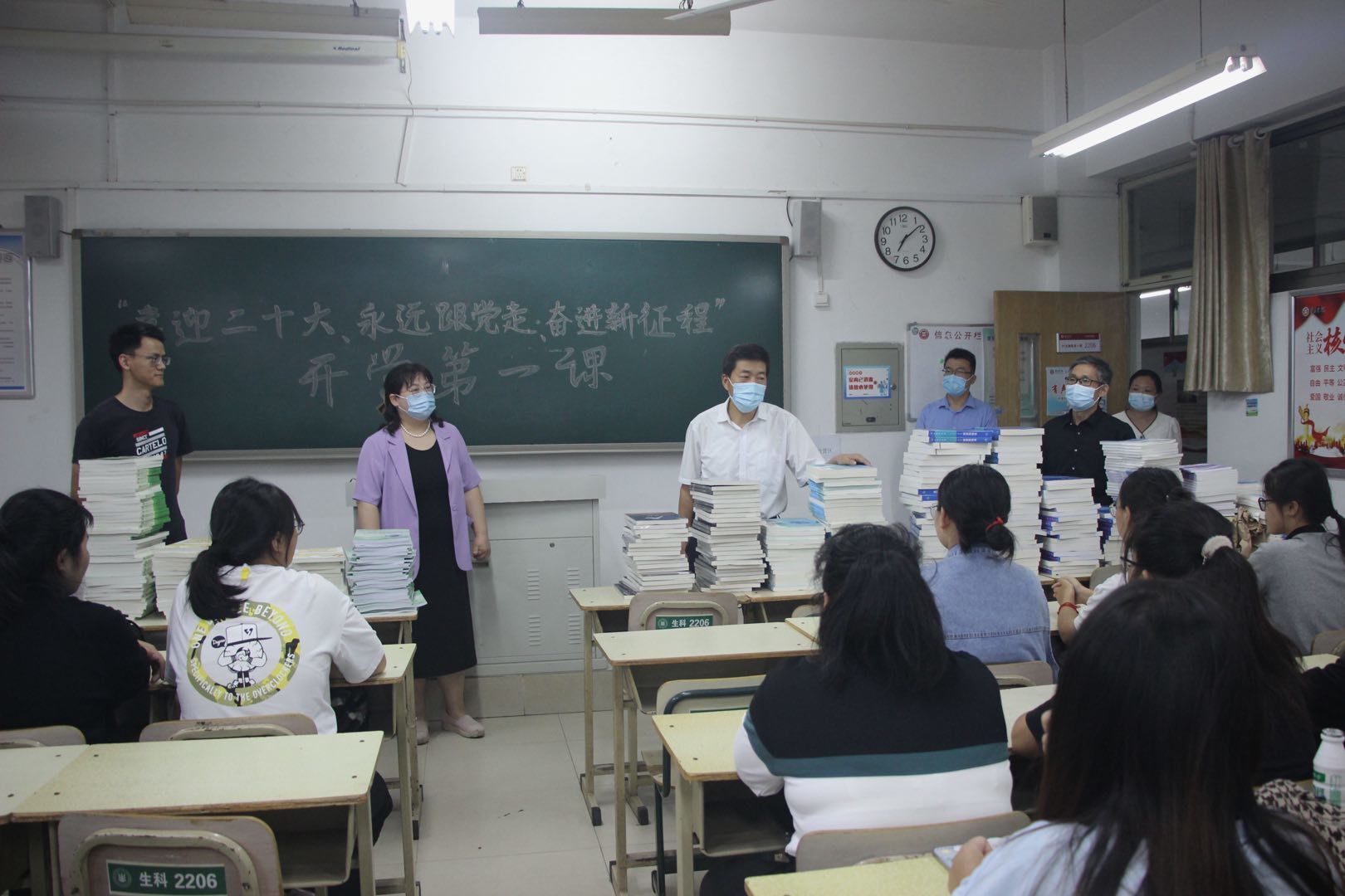 在各班,郭传鑫认真询问班级学生到校情况,开学前学生教材领取情况等等,并叮嘱新学期、新气象、新起点,同学们要努力学习,不负青春、不负韶华,做一名志向远大的学生。班会中,班主任们从疫情防控教育、爱国主义教育、心理健康教育、防止网络诈骗教育、劳动教育、职业规划教育与就业指导等方面给所带学生讲了“开学第一课”。