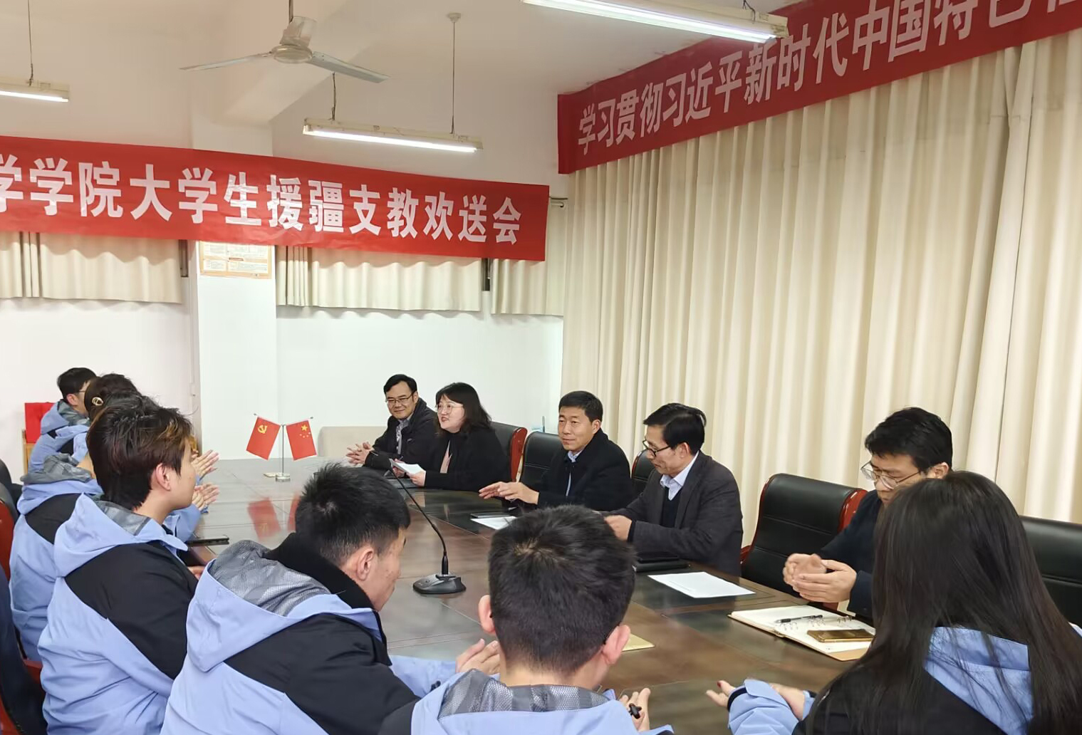 3月5日上午,生命科学学院召开2024年援疆支教学生欢送会,学院党政领导、辅导员及10名赴新疆支教学生参加本次欢送会。
