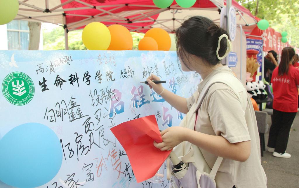 在报到点,新生们参加了“时光邮筒”活动,通过写信的方式与未来的自己进行一场跨越时空的对话。学院将妥善保管新生们的信件,并在毕业时将信件归还给当时的各位,让过去与未来在那一瞬间相逢。