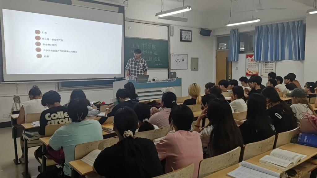 6月20日,生命科学学院组织2023级全体学生在理工楼2205观看“安全生产月”主题宣传片,重在提升学生安全意识,树牢安全发展理念;6月22日,学院组织2023级各班召开“安全生产月”主题班会,进一步帮助学生更好地识别和避免潜在的危险,注意个人人身安全和财产安全;此外,学院通过悬挂横幅、绘制宣传板报和张贴海报等多种形式,全方位帮助学生了解安全生产相关知识,增强学生的安全意识和防范能力。