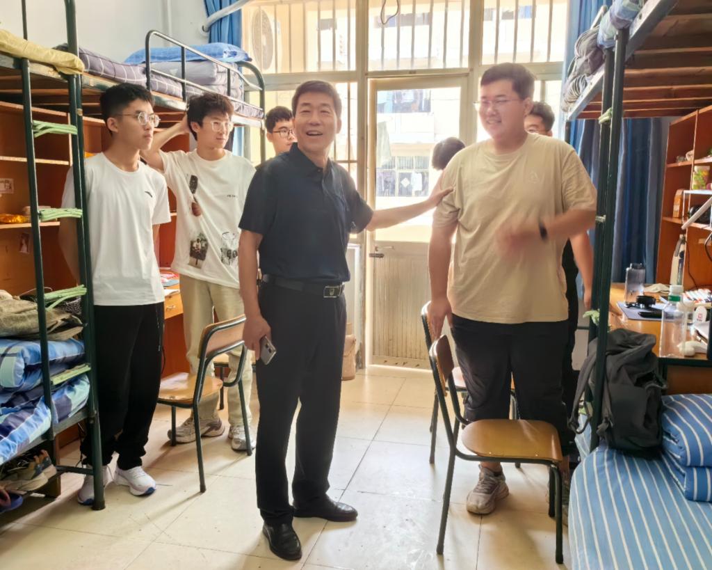郭书记带着满满的关怀与期待,逐一走访了新生宿舍。每到一处,都热情地与新生们交谈,询问他们的家乡、兴趣爱好以及入学后的感受。新生们纷纷表示,初入大学校园,既感到兴奋又略带紧张,但学院的热情接待和周到安排让他们倍感温暖。郭书记耐心与新生进行交流,鼓励他们要珍惜大学时光,努力学习专业知识,积极参与校园活动,全面提升自己的综合素质。同时还勉励新生们要相互关心、相互帮助,共同营造一个团结友爱的集体氛围。