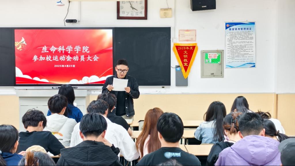 为了迎接即将到来的校运动会,激发师生的参赛热情,4月25日下午,生命科学学院在理工楼2201召开2025年校运动会动员大会。学院党委副书记韩笑、赵湘楠老师、李光晨老师以及全体运动员共同参会,大会由赵湘楠老师主持。