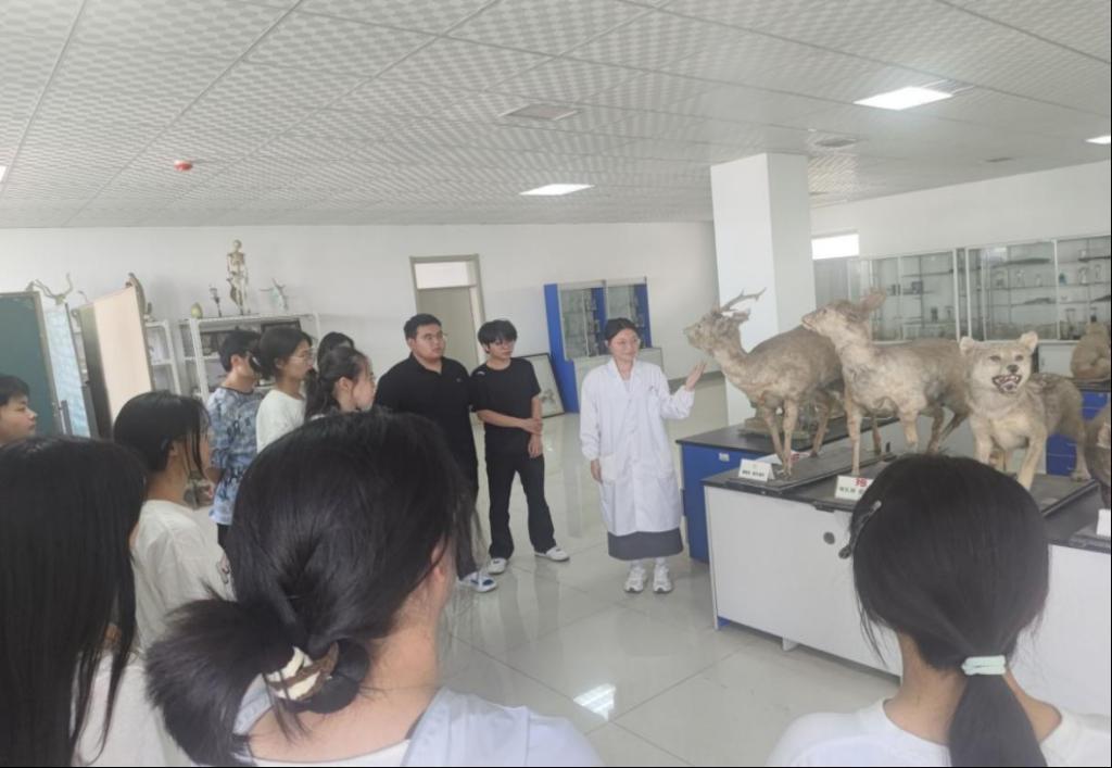 活动现场,生物协会学生讲解员带领来自全校各专业的32名学生走进动物标本馆。馆内数百件珍稀动物标本有序陈列,涵盖鸟类、哺乳类、昆虫类等多个门类。讲解员结合专业课程知识,从标本的采集制作工艺、动物形态特征、生态习性及保护现状等方面展开细致讲解。课程还设置了互动问答环节。在这一环节中,讲解员凭借专业的知识储备,耐心细致地解答同学们的疑问,并与大家展开深入探讨,充分激发了同学们探索生物知识的热情。此外,学生们还能通过亲手触摸部分标本模型、近距离观察昆虫的精细结构,进一步领略生物科学的独特魅力。