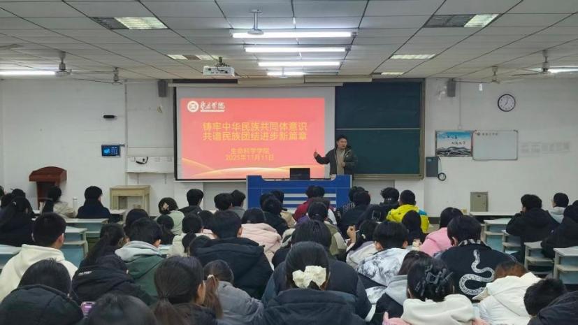 为深入学习贯彻习近平总书记关于加强和改进民族工作的重要思想,引导广大学生牢固树立中华民族共同体意识,11月11日,生命科学学院在理工楼2205教室组织召开“铸牢中华民族共同体意识,共谱民族团结进步新篇章”理论宣讲活动。