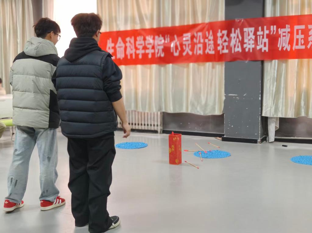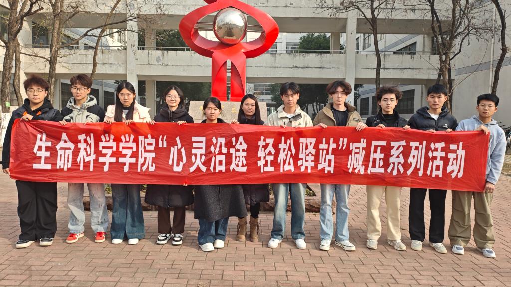 为帮助同学们缓解考试期间所面临的学习压力与焦虑情绪,营造积极健康的心理氛围,12月7日下午,生命科学学院在理工楼2317教室及理工楼下开展了“心灵沿途,轻松驿站”的系列心理减压活动。本次活动通过多种轻松有趣的互动环节,引导同学们正确面对压力,掌握有效的情绪调节方法,增强心理调适能力,从而以更平稳、更自信的心态迎接考试挑战。
